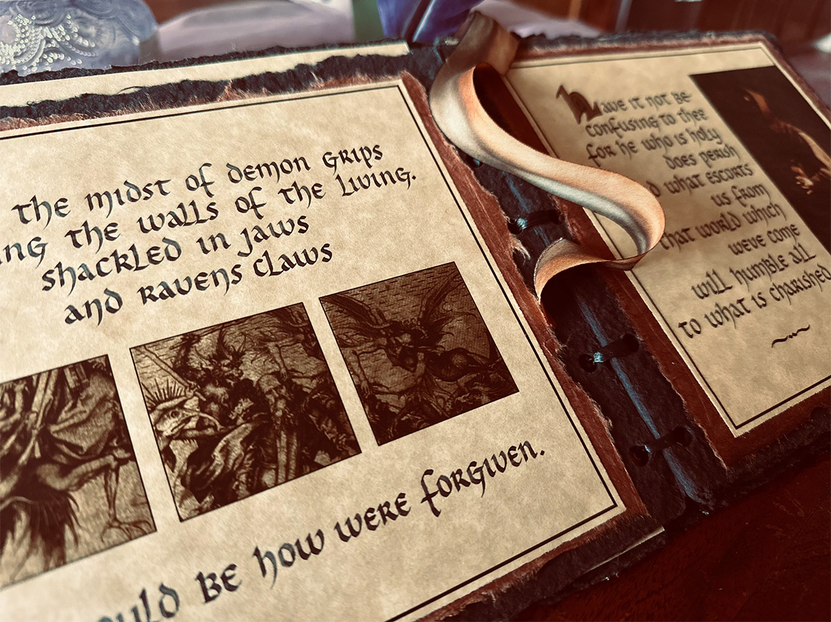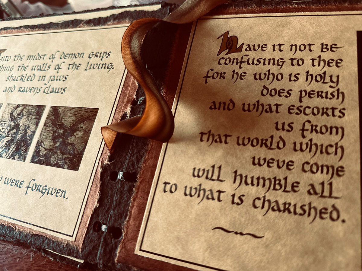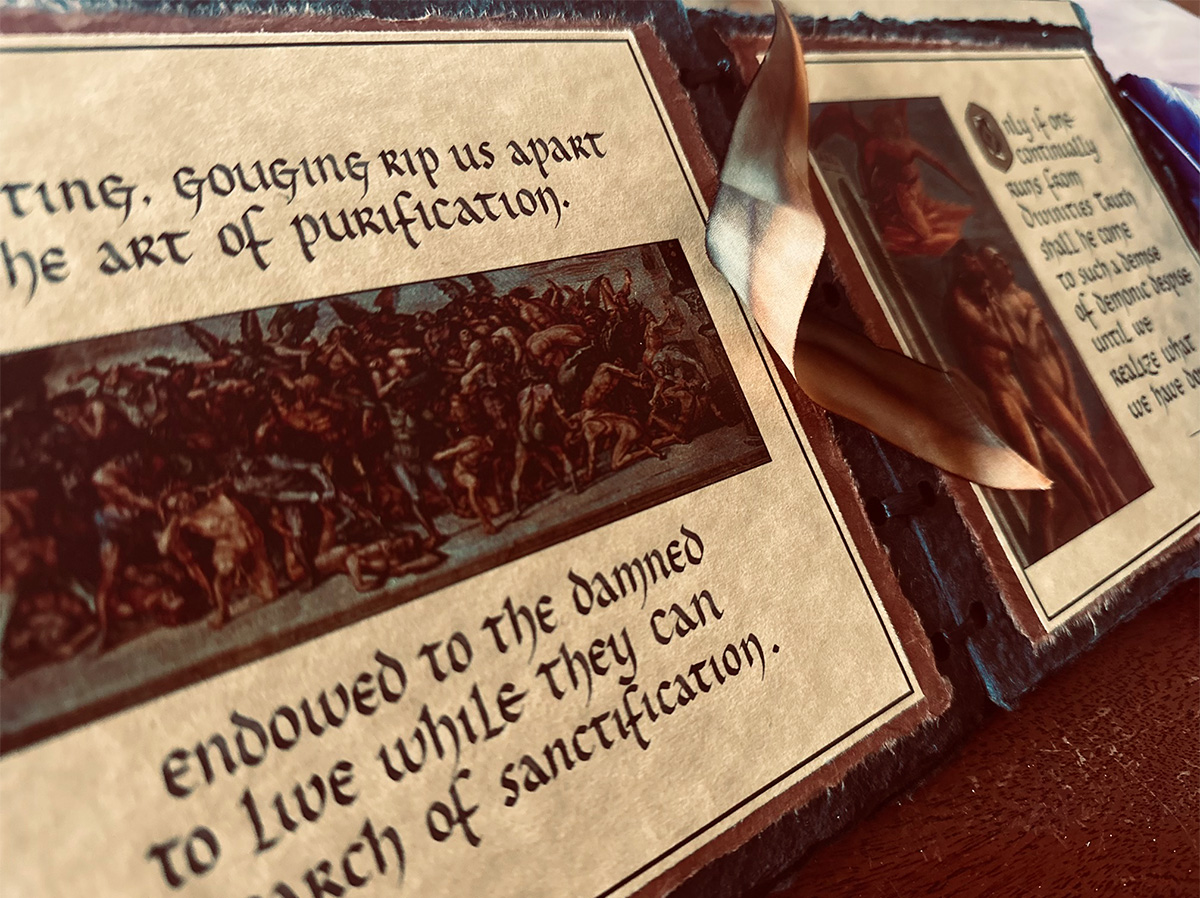 Create a medieval manuscript. That was the assignment. However, it wasn’t without a twist. Instead of a book of holy prayers for protection against the pulls of evil, the script was uncharacteristically flipped. Requiem: A mass for the dead. Journeys from deaths’ door do not always end in glorified heaven. Requiem was it’s collective warning from beyond, of what awaits those who do not repent against their own sins. Additionally, renaissance Master’s works populated the pages, visually reinforcing the realities that hell would provide for those whom fell from grace.